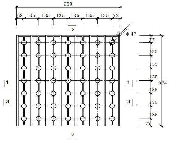 B型模板:單格濾池長度應為1.0m的倍數,寬度為0.45m的倍數,模板具體尺寸如圖: